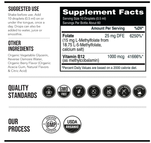 Triquetra - L-Methylfolate , 5-MTFH plus Methyl B12(berry flavor) , 15mg - 1fl. oz