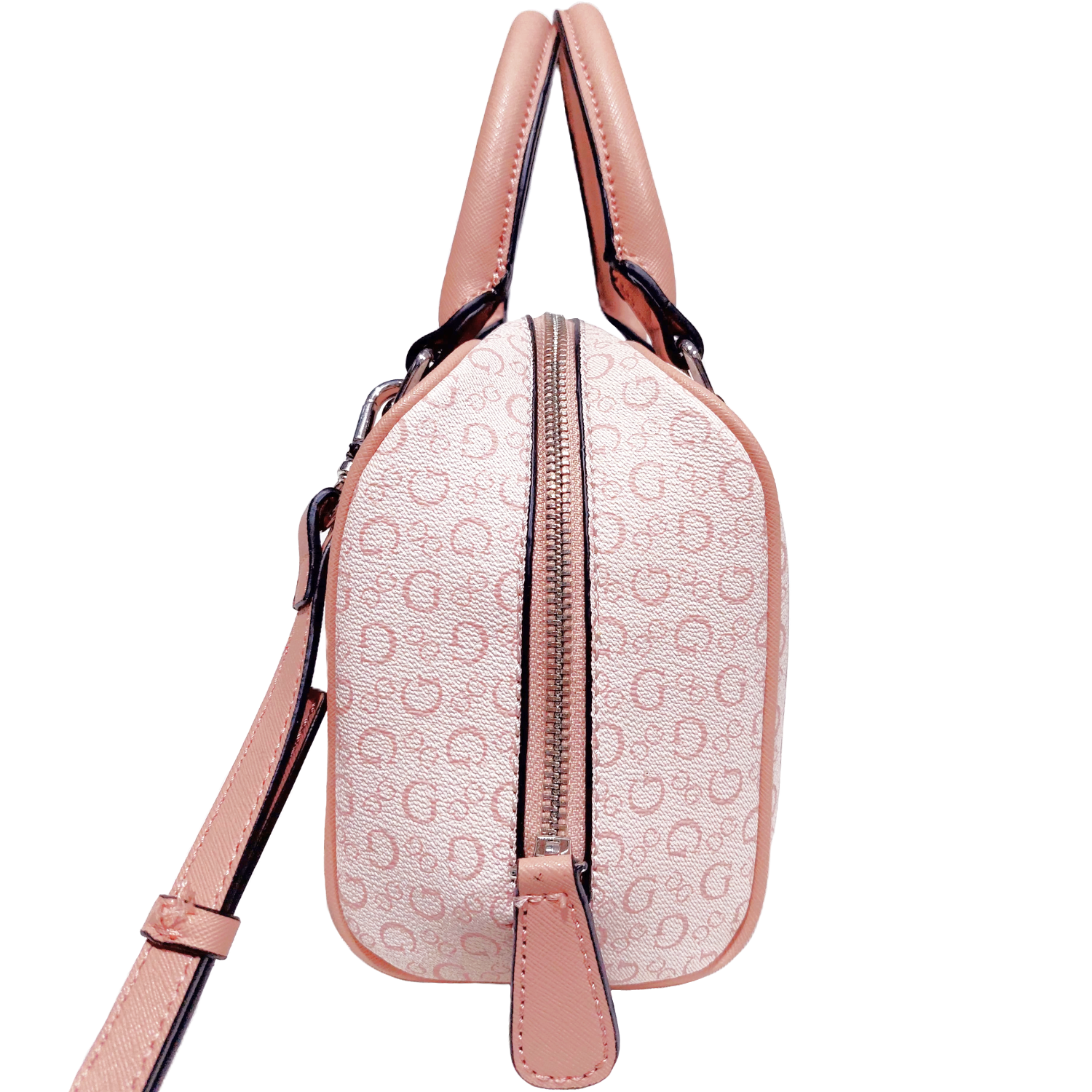 Es un bolso para ocasiones casuales, todo el diseño con patrones de la inicial de la marca, con tonos rosados y con detalles plateados.