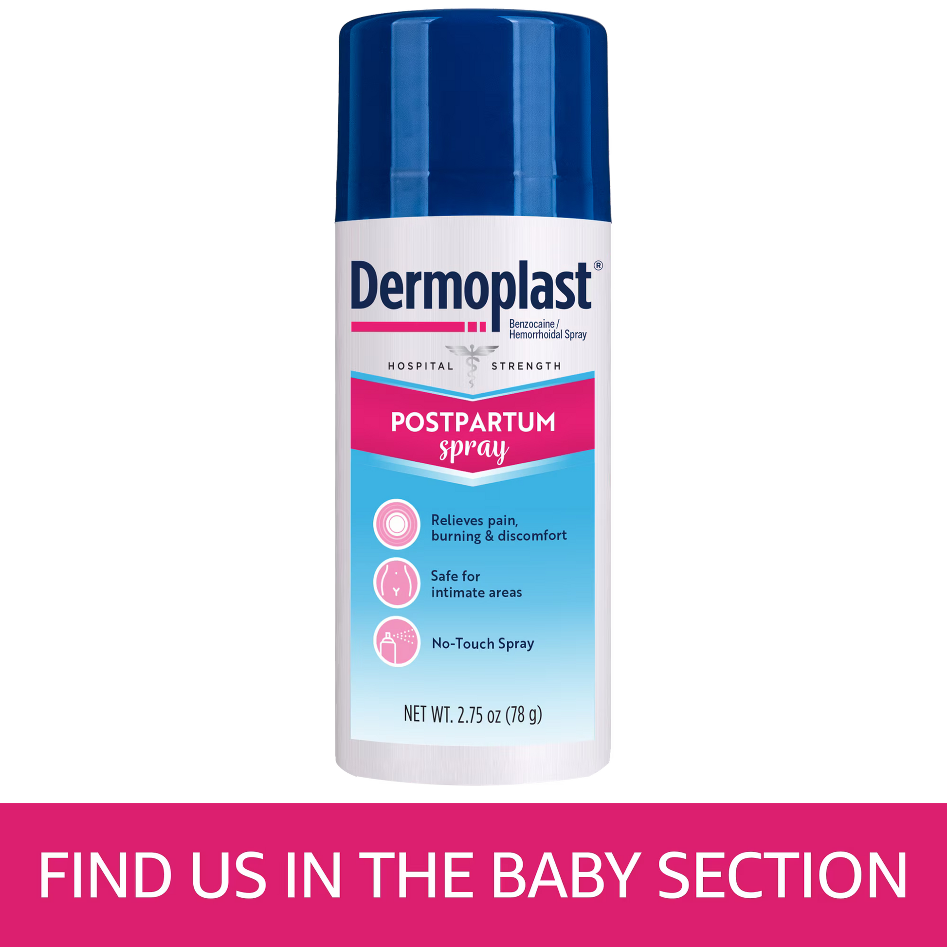 Dermoplast Postpartum Perianal Pain Relief Spray proporciona alivio rápido del dolor. Como nueva mamá, no tienes tiempo para el dolor, ardor y picazón allí abajo. Con Dermoplast Spray Postparto, rápido, refrescante, calmante alivio está al alcance. Alivia el dolor, ardor, picazón y malestar. No hay spray táctil para facilitar la aplicación a las zonas sensibles. Seguro y eficaz para una mejor experiencia postparto.