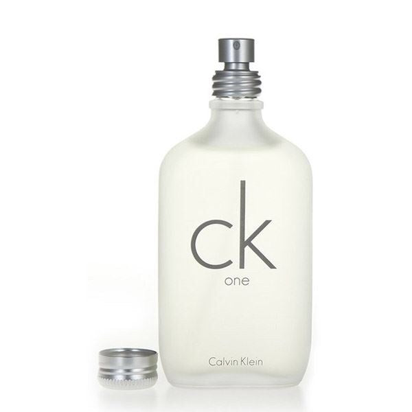 CK One de Calvin Klein es una fragancia de la familia olfativa Cítrica Aromática para Hombres y Mujeres. CK One se lanzó en 1994. CK One fue creada por Alberto Morillas y Harry Fremont. Las Notas de Salida son limón (lima ácida), notas verdes, bergamota, mandarina, piña, cardamomo y papaya; las Notas de Corazón son lirio de los valles (muguete), jazmín, violeta, nuez moscada, rosa, raíz de lirio y fresia; las Notas de Fondo son acordes verdes, almizcle, cedro, sándalo, musgo de roble, té verde y ámbar.