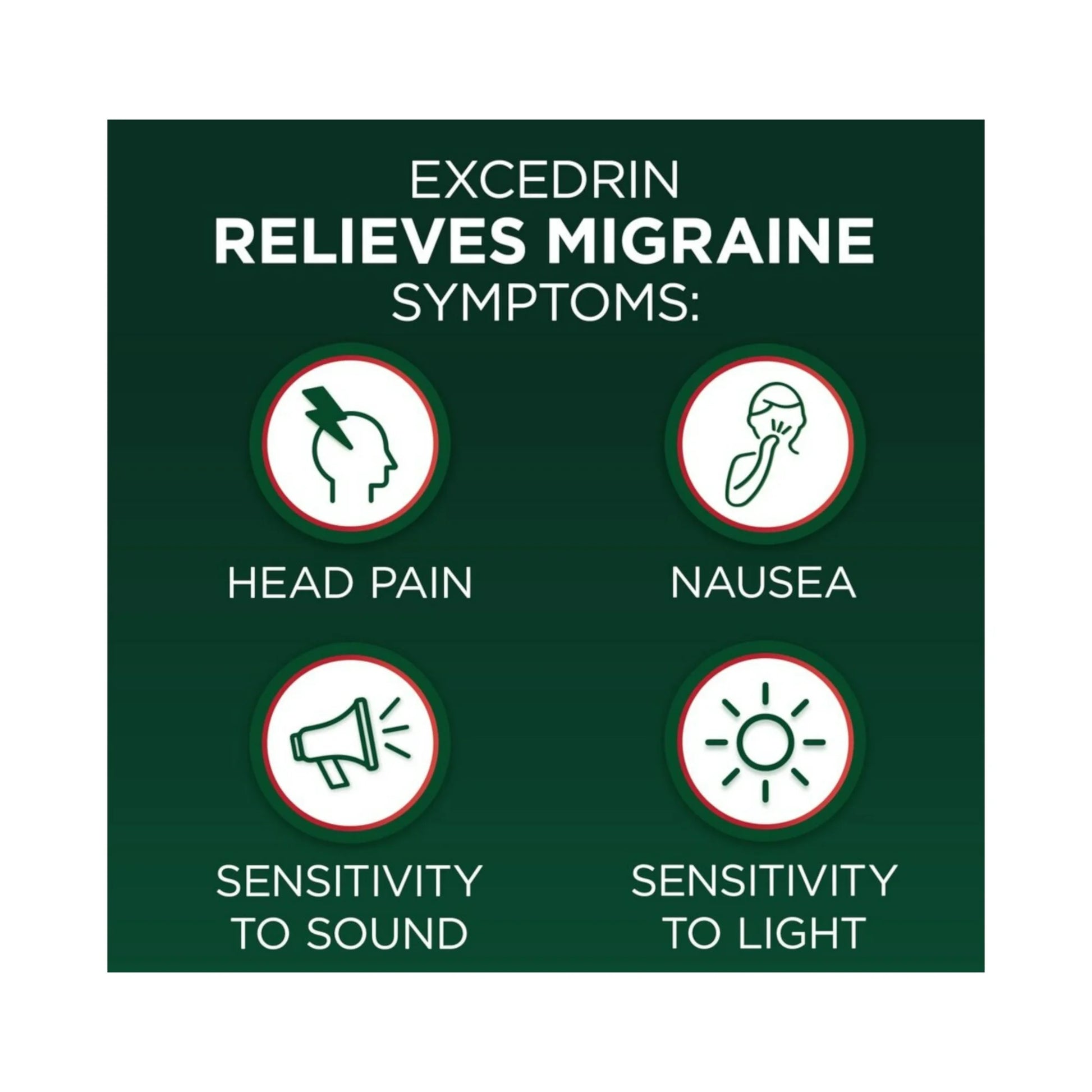 Excedrin - Alivio de la migraña (acetaminofén 250 mg, aspirina 250 mg, cafeína 65 mg), comprimidos analgésicos para dolor de cabeza, 24 comprimidos