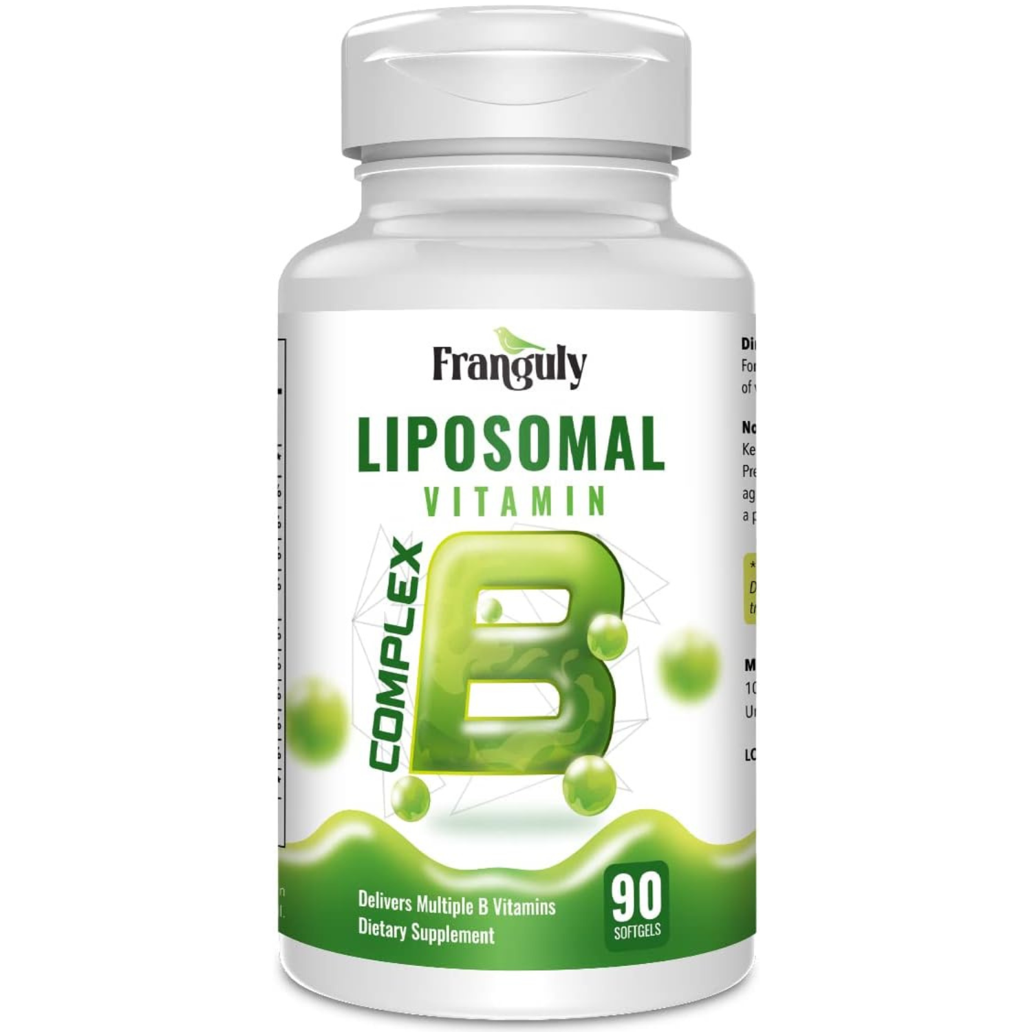FRANGULY Vitaminas B activas del complejo B liposomal con colina e inositol, 90 cápsulas blandas de alta potencia B1, B2, B3, B5, B6, biotina, folato, B12 metilado, suplementos inmunológicos, energéticos, cerebrales y cardíacos