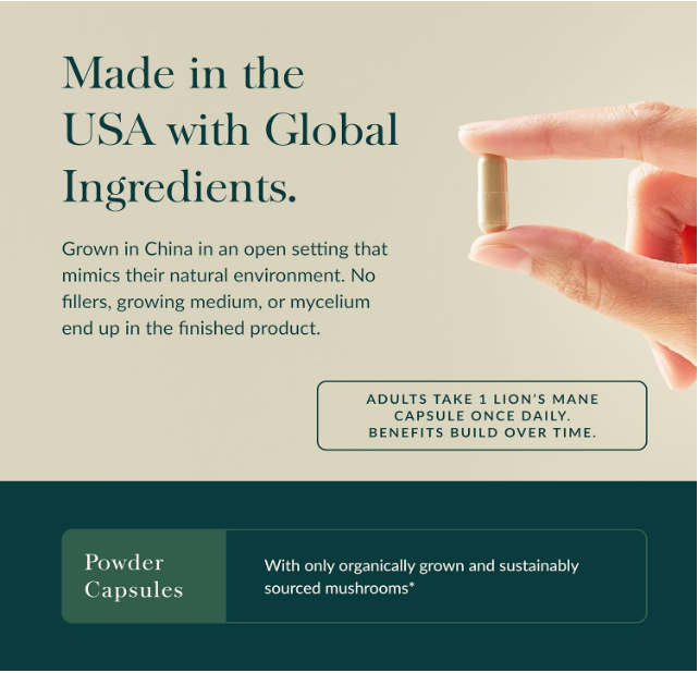 - Soporte potente: con extracto de hongo 100%, cada cápsula tiene 2,500 mg de hongo melena de león seco