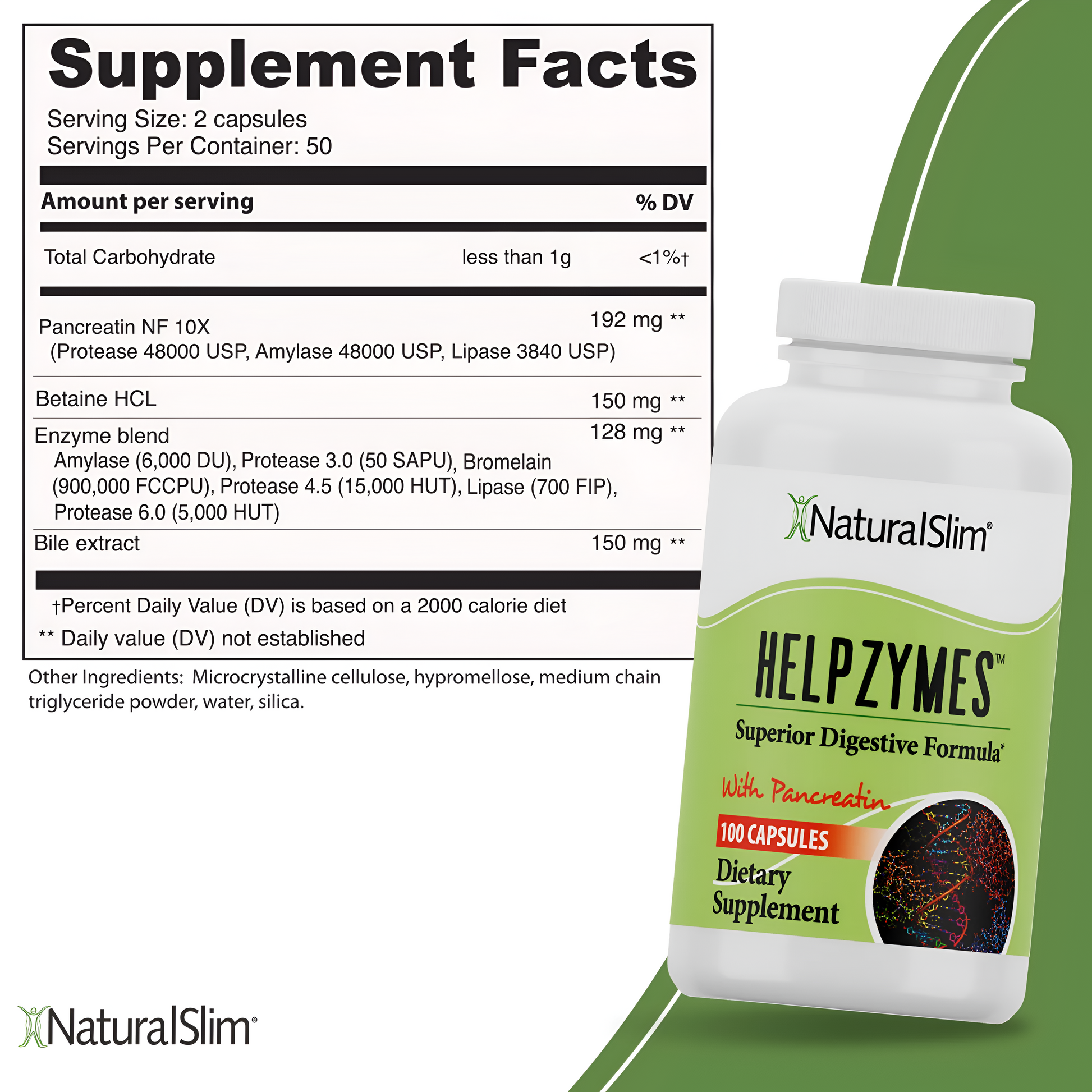 Helpzymes™ - NaturalSlim Enzimas Digestivas con Pancreatina 100 Capsulas
