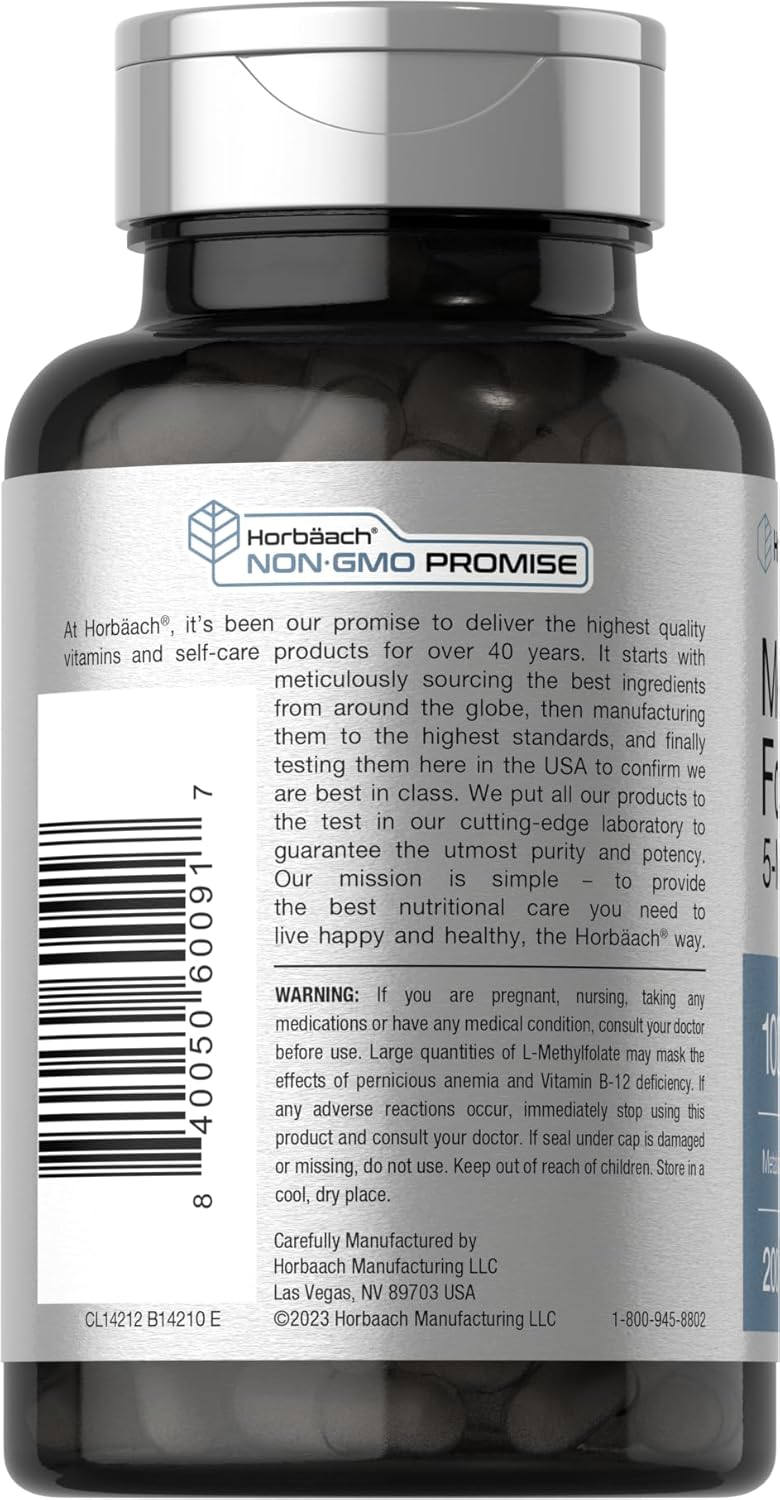 Horbaach - Methyl Folate , 5MTHF 1000mcg - Folato de metilo, 5MTHF 1000 mcg, 200 Capsulas