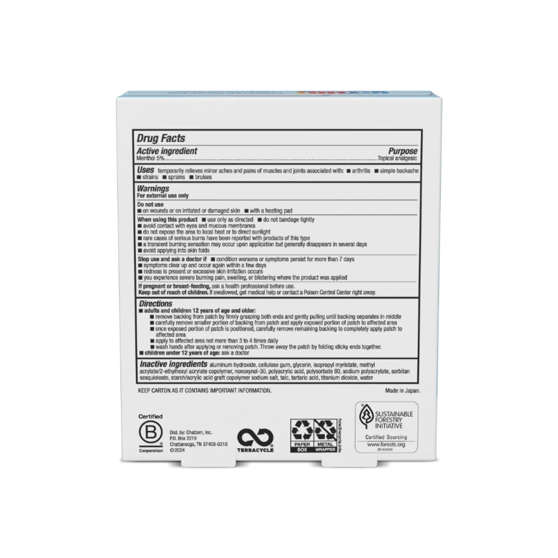 - Incluye: una (1) caja de 5 unidades de parches de alivio del dolor extra fuerte para espalda y áreas grandes