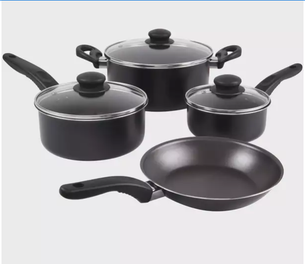 Juego de ollas de cocina antiadherentes Mainstays 7 piezas, color negro