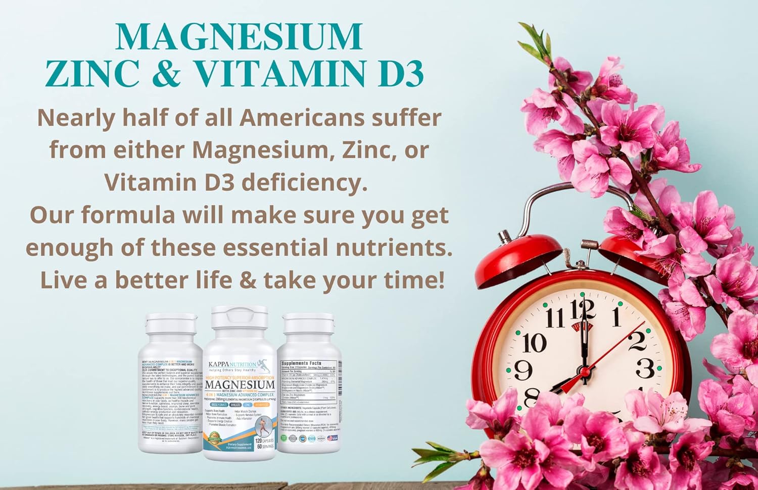Kappa Nutrition Magnesio Advanced Complex glicinato, bisglicinato, malato, zinc, vitamina D3 - 120 Cápsulas