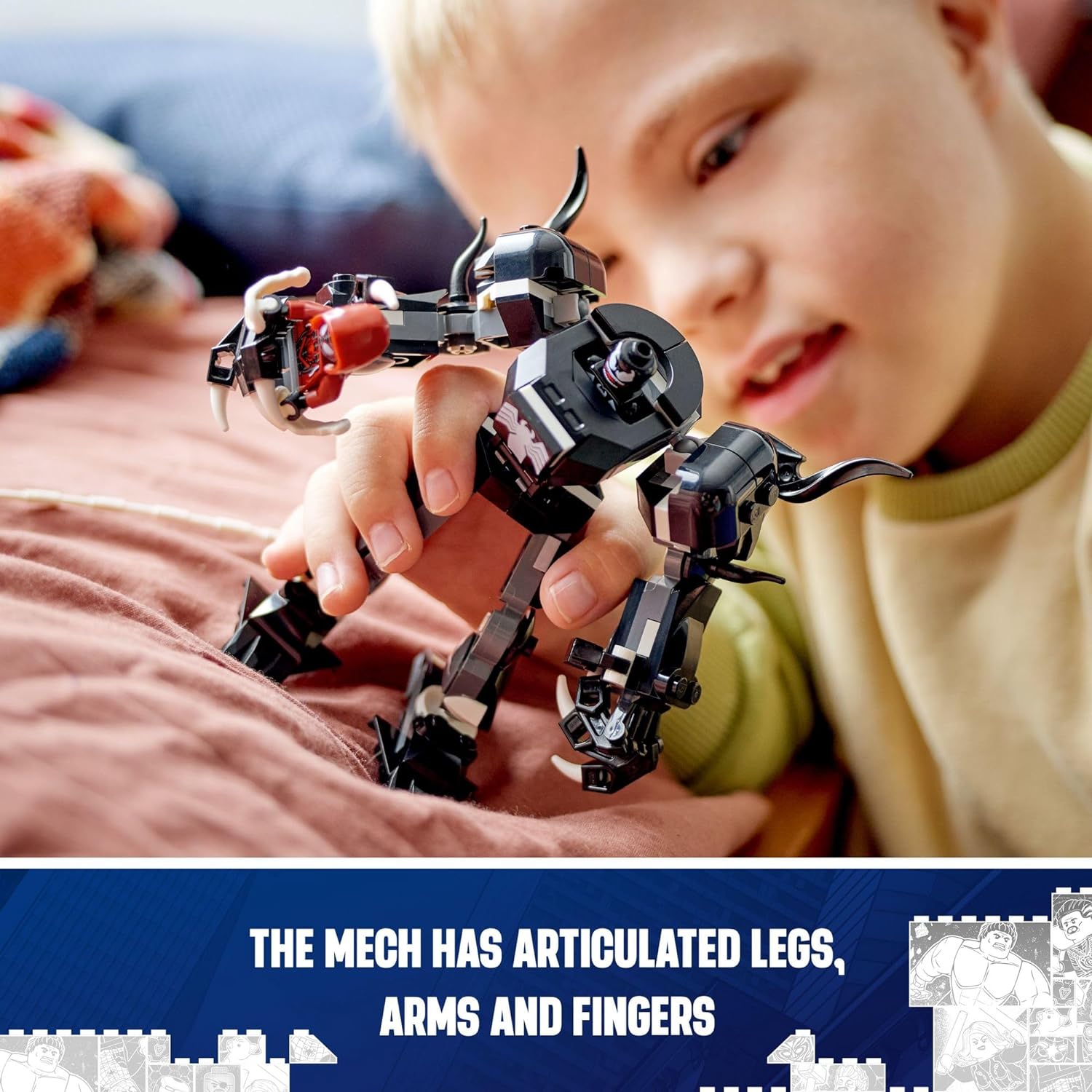 - Muchas formas de jugar: la minifigura Venom LEGO encaja en la cabina de apertura del mech, cuyas extremidades móviles se ajustan para un sinfín de posibilidades de juego y exhibición
