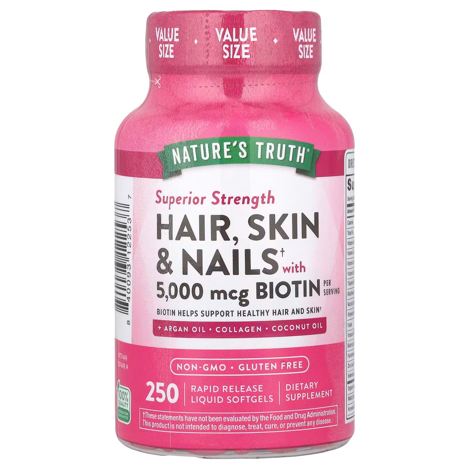 Nature´s Truth - Hair, Skin & Nails 5,000mcg BIOTIN - 250 cápsulas blandas líquidas de liberación rápida