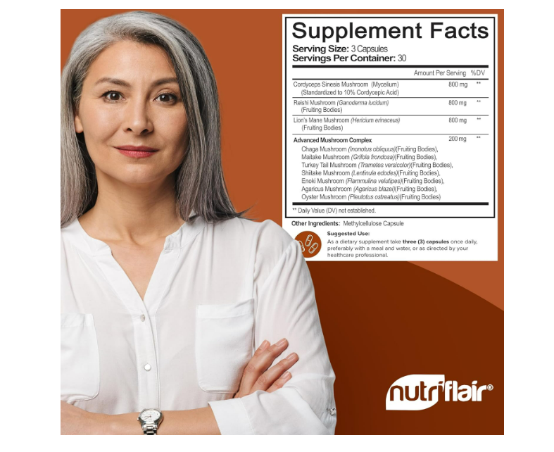 NutriFlair Suplemento de hongos de 2600 mg - 90 cápsulas