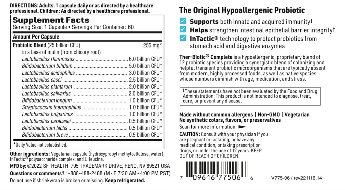 SFI, Ther-biotic complete 12 probiotic species/ 25 billion CFU, 60 capsulas
