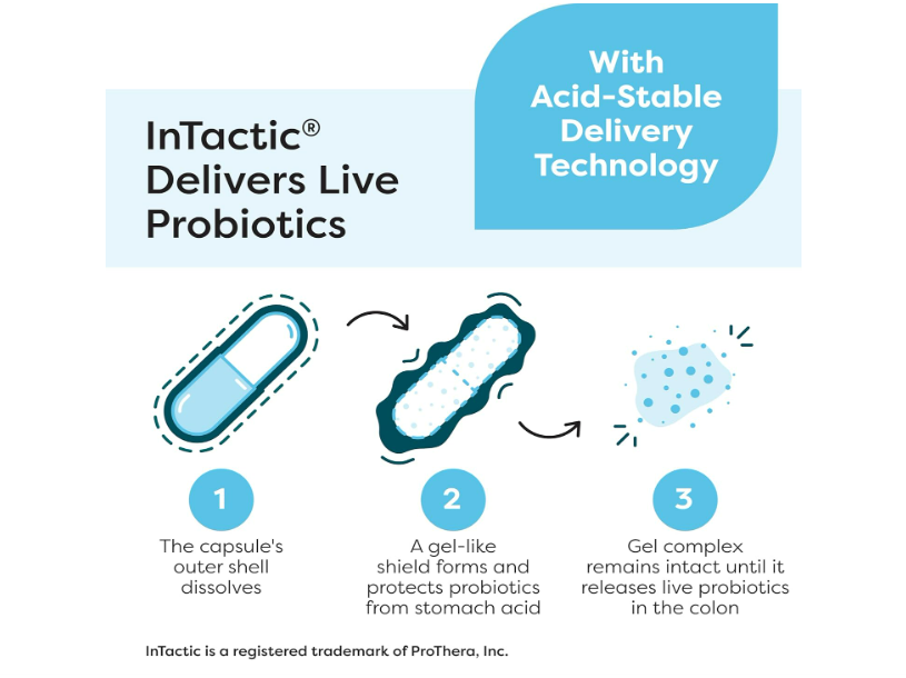 Nuestras presentaciones utilizan la tecnología InTactic® para garantizar una supervivencia óptima y la máxima eficacia en todo el tracto digestivo. Ofrecemos cápsulas que aportan 25 mil millones de UFC (unidades formadoras de colonias) por cápsula en un práctico suministro para 60 días, o para 120 días para usuarios a largo plazo. Nuestro polvo, por otro lado, aporta 100 UFC por porción y se disuelve fácilmente en diversos medios líquidos fríos.