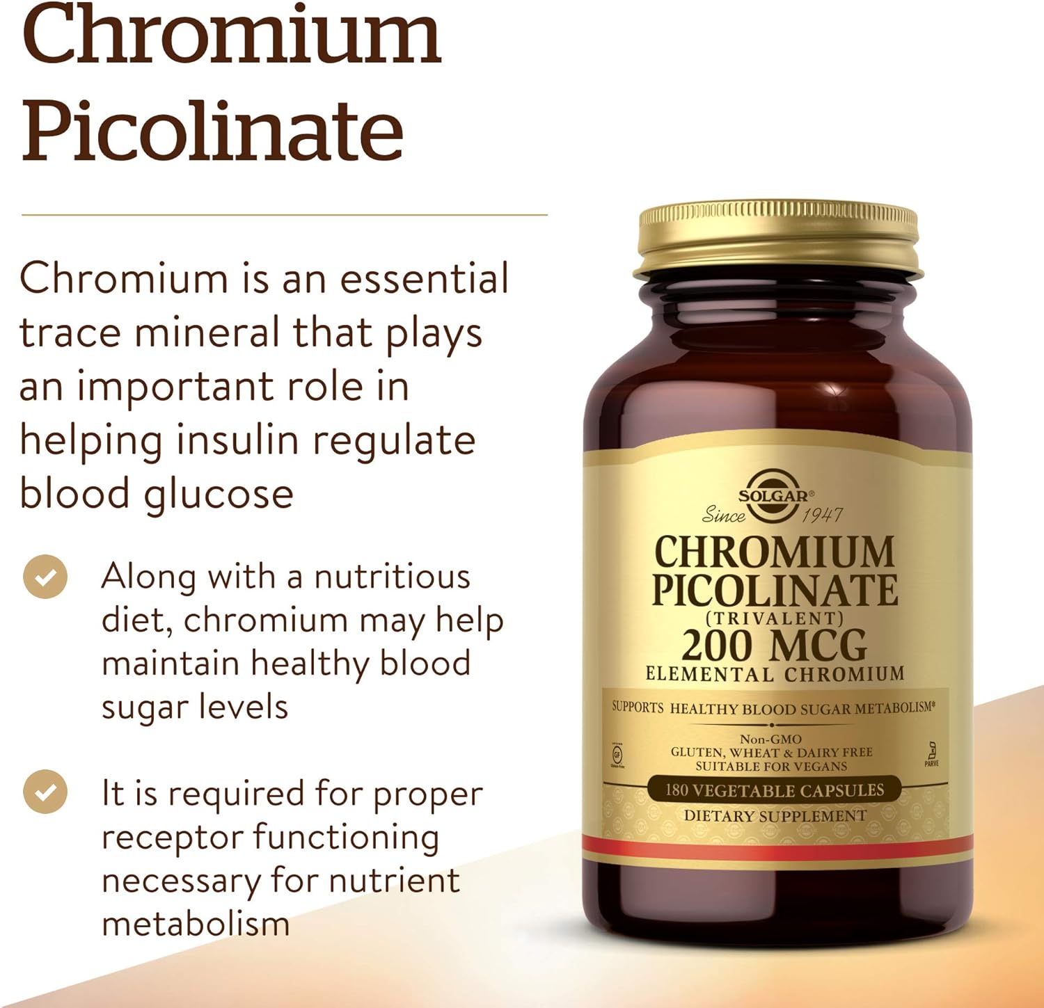 Solgar Picolinato de cromo de 200 mcg, 180 cápsulas vegetales