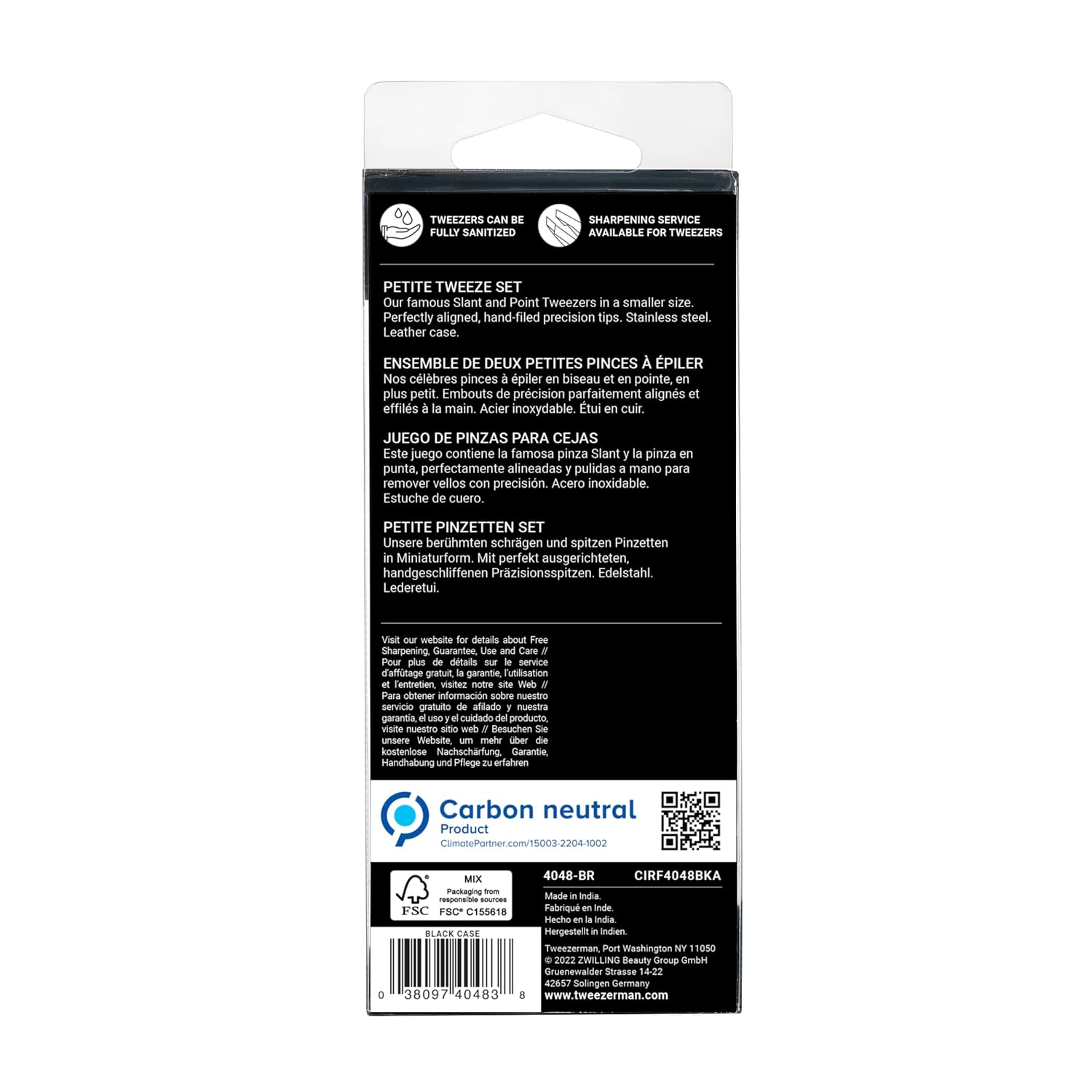 Tweezerman Juego de pinzas pequeñas con estuche de viaje, pinzas de punta e inclinación, (caja negra)