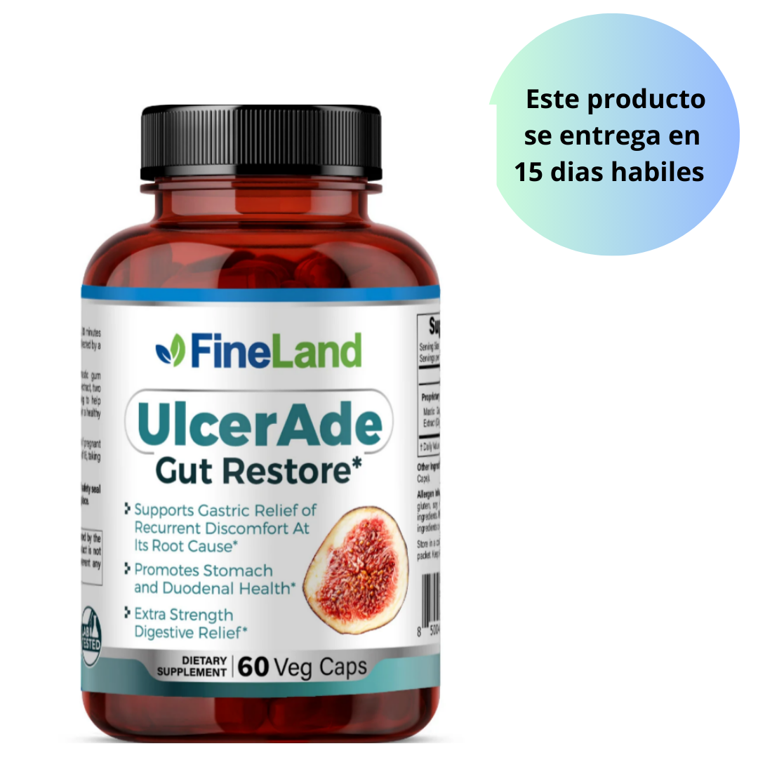 La fórmula UlcerAde de FineLand contiene goma de masilla en polvo y extracto de raíz de regaliz desglicirricinado, dos ingredientes cuidadosamente seleccionados en una porción para ayudar a apoyar la capacidad natural de su cuerpo para mantener un estómago y un revestimiento duodenal saludables.