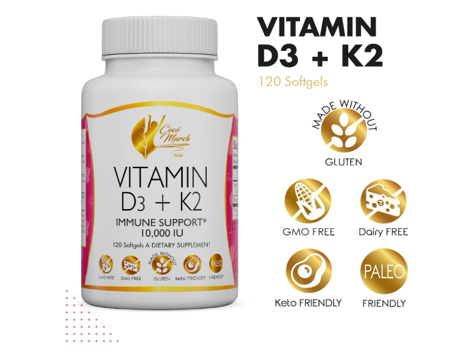 Coco March - Vitamina D3 + K2 10,000 IU - 120 capsulas